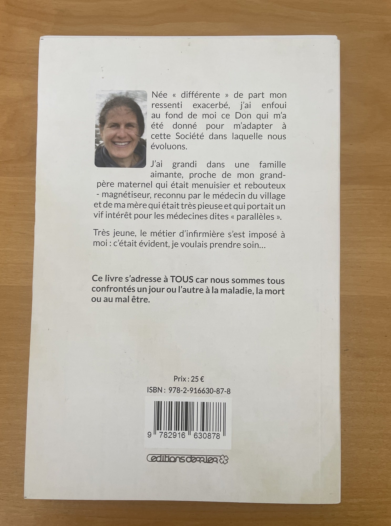 Après quinze années de soignante dans les hôpitaux et cliniques en qualité d'infirmière de nuit, j'ai quitté ma blouse blanche pour me consacrer désormais à cette manière de prendre soin - considérer la personne dans ses trois dimensions : physique, émotionnelle et spirituelle - qui est bien souvent complémentaire à la médecine classique.